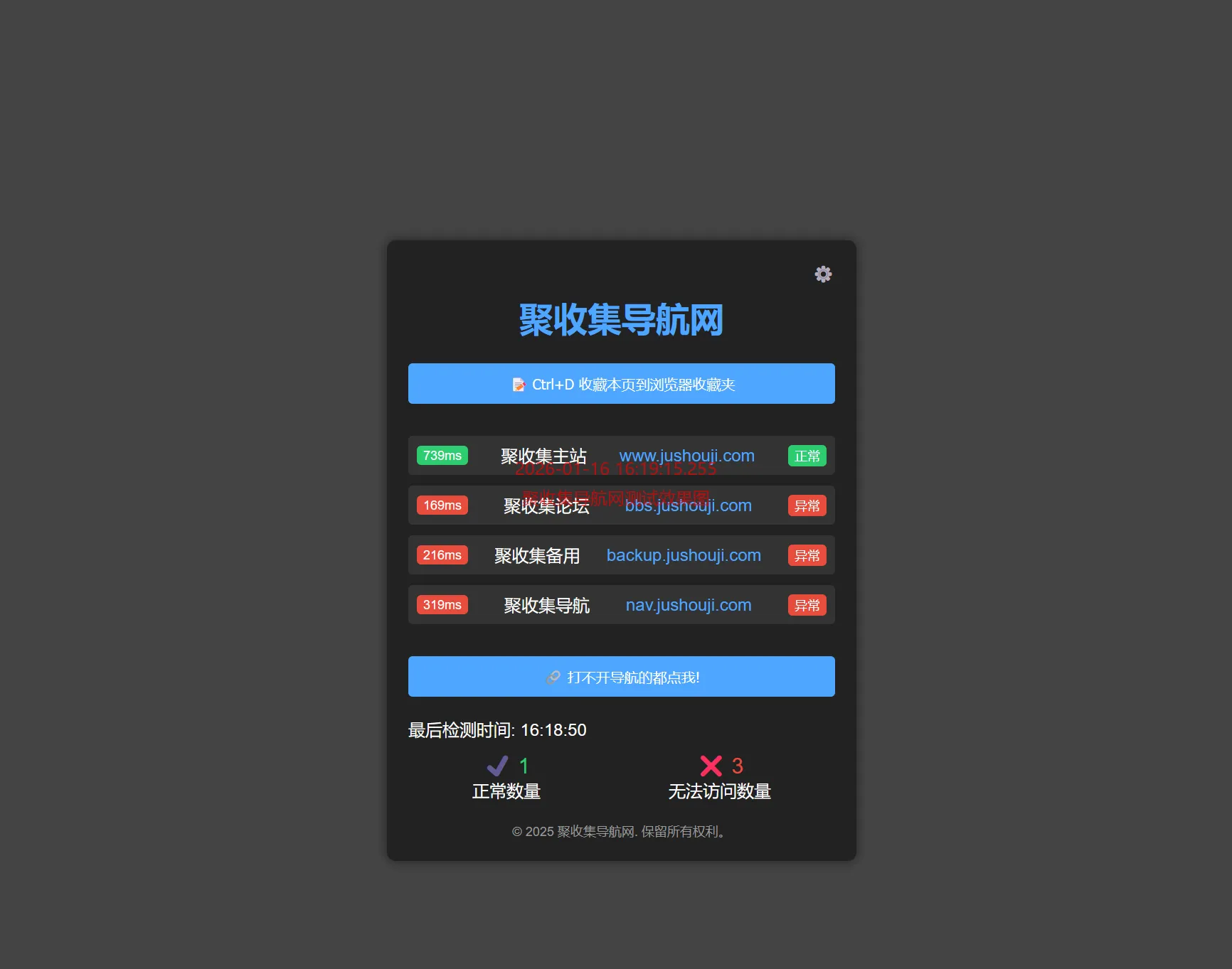 聚收集导航网本次为大家分享的是:聚收集导航网以前再用的永久发布页源码带检测网址链接功能,功能俱全;